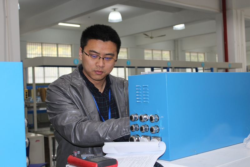 在掌握检测检验的要领,成为所谓的“熟手”之后,他并不满足,2013年在矿用电话耦合器检测中,他发现原来的测试工装工艺落后,铃流电压和铃流电流不能连续调整,带载能力也不能满足部分产品的要求,很难保证测试的准确性。于是他开始搜索相关的资料,组织几个志同道合的同事着手研究,凭着学校打下的基础,生疏的模拟电路再重新捡起来,陌生了的PCB制版再重新学习。那段时间实验室就是他每天与铃流信号源约会的地点,每天都处于失败、改变、再尝试的循环模式,经过两个多月的集中攻关,终于将困难一一解决,研究出符合检测需求的铃流信号源,并获得国家专利授权。