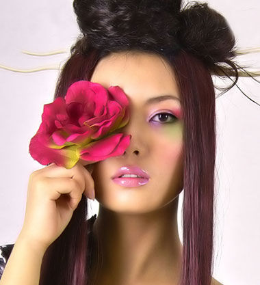 1.表现结构的涂法用阴影色和明亮色的搭配,可以强调眼睛的结构。在需要的凹陷部位涂阴影色,在希望显凸的部位涂明亮色。这两种颜色的配合,可用同种色,如用深棕色作阴影色,用淡米色作明亮色。或者将浓茶色作阴影色,用浅桃红做明亮色。也可以用邻近色进行搭配,如阴影色涂偏深的蓝紫,明亮色用淡淡的玫瑰红等。