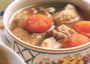 萝卜海带汤:海带100克、桂花10克、姜5片、萝卜1个约300克。把萝卜削皮切成小块,用1500毫升水以大火煮沸,先放萝卜、海带、姜片,待水再度滚时转成小火,直到萝卜、海带煮烂熟,最后加入用纱布包着的桂花,再煮15分钟即可。每日午餐、晚餐前先喝汤吃料。萝卜能消积滞及清理肠胃;海带性咸寒,常食能清血管中的多余血脂。(佚名)
