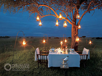 整个营地一副上个世纪20年代走出非洲的风情,帐篷里的装置非常精致,甚至可以说件件都是奢侈品。晚餐席间,大家热烈地讨论了今后一周我们要做的事情,在大草原上打网球、骑马旅行、温泉SPA当然,最重要的就是看动物们的举家迁移,如果山还不够高的话,坐直升机怎么样?我们的专机随时听候起飞命令。