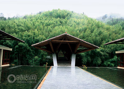 看似粗犷朴素的客家风格的夯土,与竹子一道,形成十字水生态度假村的核心视觉景观。度假区内几乎所有的建筑都有着高屋顶、青黄瓦和夯土墙,几近落地的玻璃窗、超大的露台、可以看到天空的浴室,所有的设计都让住在其间的人们可以随时与大自然“无缝连接”。令人心仪的是,客房内的配套用品也全部采用天然材质,如纯丝和纯棉的床上用品,竹子和木质材料的家具,摆件也大多是陶土和石器制成的。为了最大程度地提升自然生态的视觉感受,度假村在别墅院落旁设置了众多镜面水池,水池中休憩着紫色的睡莲,平整的水面将南昆山绿色的山景完整折现,只需要在院落里支一张躺椅,就可以360度完全沉醉在绿涌的林海里。