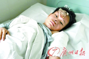 10月24日,杨某从6楼摔下已经6天了,此时的她才完全清醒过来。记者见到她时,她正躺在医院病床上接受治疗。她的头部、左手臂、左脚都绑着纱布,因伤势很重,动弹不得。得知记者前来采访,一身伤痕的她,欲言又止,但她的眼神里似乎充满了恨与无奈。