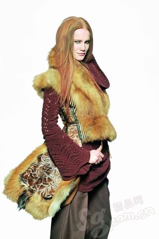 以翻毛皮或是麂皮绒质地设计的小马甲简直是本季搭配民族碎花的绝配,如果马甲再结合一点儿民族刺绣或者流苏设计,效果就更加完美。