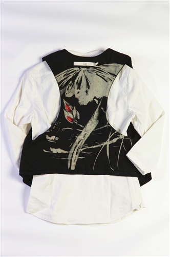 这款背心,背面的水墨画让你的背影有了耐人寻味的“看点”。 (梅竹 夏露摄影)