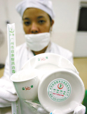 相关部门表示,将研究制定《广州市餐饮业使用集中洗消餐具卫生要求》和《广州市餐具集中洗消卫生规范》,在目前尚未有针对餐具集中消毒企业的相关法律法规出台前,将加大监督抽检力度,严厉查处使用不合格餐具的餐饮单位。