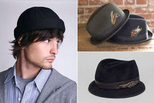 顺时针, 左起: Urban Outfitters 羊毛便帽, $28; Rag & Bone 猪肉饼帽, $150; Victor Osborne Roland 帽子, $275.