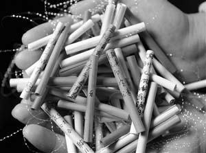 11月25日,燕子开始了第一个疗程化疗,化疗让她吃尽苦头。昨天,化疗结束已经两天,尽管脸色蜡黄,但她精神却很好,有说有笑。她打开一个蓝色的玻璃瓶,瓶中装满99张小纸条——这是她在四川外语学院成都分院的高中同学,请求学院99个陌生人给燕子写下祝福,鼓励她战胜病魔。每天燕子都会展开一张小纸条,让温暖弥漫一整天。
