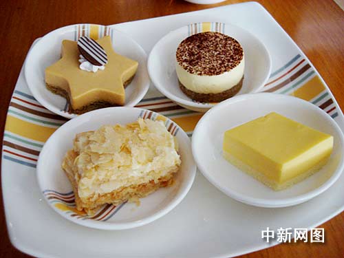 点了一个典型的英式佐餐,三层拖盘的甜点,印度服务生端上银水壶,贴心地教了我们冲泡红茶的方法,并关照茶壶的最后一滴必须倒完,因为这一滴凝聚了红茶的最后风味,在英语中叫“golddrop”(黄金滴)。