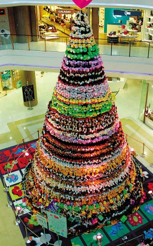 2008年是特殊的一年,除旧迎新之际,圣诞树和它的主人也以特殊的方式奉献爱心。在装修一新的353广场中庭,树起了一棵由2353个卡通玩偶组成的“玩具圣诞树”,整棵树高12米,消费者可以花49.5元认购其中任何一只玩具,并获赠商家送出的爱心相框留念,日后,这些玩具将被发往地震灾区的学校,捐给那里的小朋友。