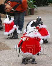 中新网12月10日电 日本松江市的花鸟天地“松江佛盖尔花鸟世界公园”日前迎来了一群穿着大红圣诞老人装的企鹅。游客们对着走路摇摇晃晃的企鹅直呼“可爱”,圣诞气氛格外浓厚。