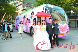 上周六,一辆装饰十分浪漫温馨的“幸福巴士”载着一对新人穿行在同福路、吉祥路、惠福路等广州市区里寓意吉祥的街道,这种少见的迎亲方式引来不少市民驻足观看。