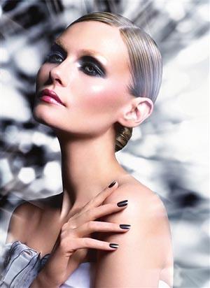 以最个性的方式展现低调的摇滚风潮。来自英伦大地的年轻模特CiaraNugent带着一贯的酷感与个性,担当了此款妆容的演绎模特,浓重烟熏眼妆,温暖色和着晶莹闪亮的双颊配合微卷齐刘海、耳际随意的小碎发,加上今季的流行圣品——叮叮当当的长串金属耳环和BCBG的藕灰色晶铜亮片装,刹那间一位不拘一格,应合玩乐风潮的英伦摇滚个性女郎站在你的面前!