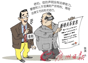 不仅私下将家族的老房子给卖了,而且还拖欠应给父亲的卖房款,直到法院强制执行才付钱!近日,家住广州市东昌南街的张先生因为自己儿子的上述种种行为,向整个家族的亲友发出了“断绝宣言”:要与儿子和孙子断绝关系。昨天,张先生在家中讲述了自己发出这份“断绝宣言”的前因后果。