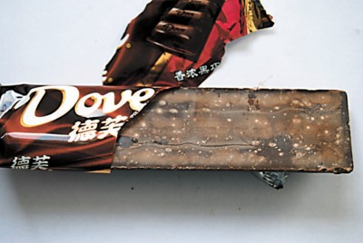 而对于金先生遭遇,该工作人员只是告诉记者,巧克力中含有可可脂,在运输过程中,如果温度或者受压程度出现变化,可可脂可能会溢出,停留在巧克力表面就成斑点状了。今天上午,截至发稿,德芙厂家没有给本报回复,不过吴女士与金先生告诉记者,他们的巧克力均得到调换,德芙厂家也给予了赔偿。(郭宇 报道 图片由读者提供)