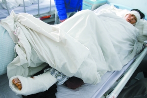 昨日上午,阚云秀头上缠着浸透血渍的纱布,躺在清华大学第一附属医院华信医院的一间病房里输液。据阚云秀介绍,前日晚间7时许她已经睡下,蒙眬中丈夫杨某从外面回来。