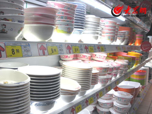 近日有报道称,国内部分企业使用不合格原料生产仿瓷餐具,给消费者带来潜在的健康危害。今天,本网记者对济南的几家超市进行暗访,发现仿瓷餐具仍在市场上进行销售。