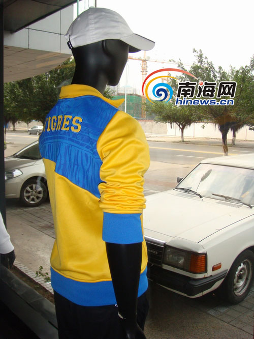 近日,一名自称姓路的男子向本网反映称,2008年12月25日,他在海口玉沙路椰海大酒店旁边的阿迪达斯专卖店花480元买了一件黄蓝相间的外套,仅穿了两个多小时,肩包带跨过的地方就起了毛球,长达10多厘米。目前,购买的外套已被商家送往厂家进行检测。