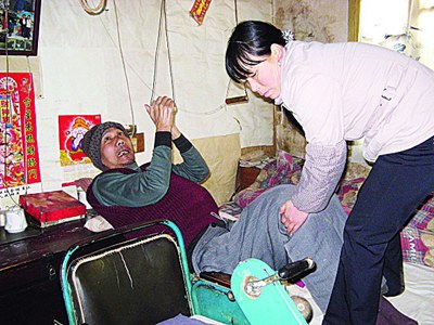 任菊会的公公索海存老人今年65岁,1981年在砍树枝时不慎从树上坠下,致使脊椎粉碎性骨折,瘫痪卧床已经20多年了。1990年,任菊会不顾亲属的劝阻嫁到了索家,承担起照顾老人的重任。
