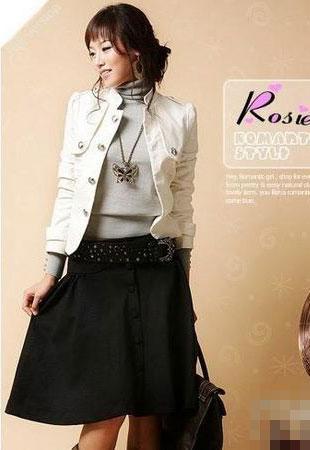 上身帅气的皮外套和下身的黑色长裙有让人意想不到的协调,如同天秤座的人天生具有理想主义和现实主义的看似矛盾的平衡,灰色的打底高领衫也给人很稳重的感觉。