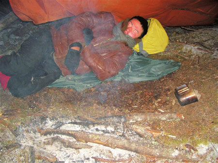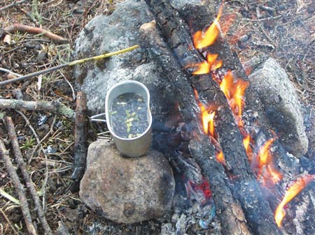 我们喝尿,并不是补充水分,主要是补充盐分。那一晚,我们感觉非常虚脱,晚上我们在水壶里尿了一壶尿,放了一些烧过的木炭,然后熬干,然后就舔剩下的盐。由于晚上找不到昆虫,我们就找了一些羊粪,然后用水熬开,喝着还有一股清香味。