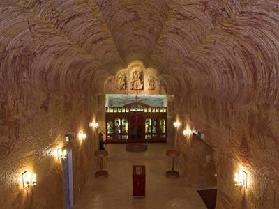先从世界各地飞到澳大利亚悉尼,然后转机到南部教会城市阿德莱德(Adelaide),在这里住宿一夜,补足精神后,第二天上午乘坐惟一一家经营库波佩迪航线的Kendell Holidays航空公司的小飞机,在只有8个座位的单引擎飞机上度过难挨的3个小时——没有空姐伺候,也没有咖啡和红酒,舷窗下面是一望无际的红土沙漠,就在女孩子们即将花容失色的当口儿,库波佩迪到了。在高达40摄氏度的热浪中坐上四驱车,沿途清一色的坑洞和起伏的的红色沙丘,仿佛登上了土星,在这里首先要学会“黑白颠倒”,把白天当夜晚,把夜晚当白天。先从晚上开始吧,因为晚上温度才能降下来,先去商店给情人挑选蛋白石,然后——库波佩迪郊外有一个称作“月球世界”(Moon Plain)的沙丘,是观看南半球流星雨的最佳地点,与情人摸黑来到这里,坐在柔软的沙子上,老板会送上两杯冰凉的澳洲利亚橙,然后透过高倍天文镜了望星河闪烁的太空,在流星即将滑落的瞬间,拥紧你的情人许下星语心愿.....沙漠里的白天酷热难当,最好呆在旅馆里,而洞穴旅馆恰恰是库波佩迪的特色,情人们称其为“洞房”——地地道道的“洞”啊!事实上,镇上除了教堂和医院,基本都是洞穴居所,这些大小不等的洞穴全部是开采蛋白石废弃的矿坑。库波佩迪最大的旅馆“沙漠洞穴旅馆”(Desert Cave Hotel)有20间“洞房”,别看在地下,却相当豪华,除了地下恒温23摄氏度外,餐厅、酒吧、K房、珠宝店一应俱全,曾经入选过《世界顶级豪华小旅馆》(Small Luxury Hotels of the World)。