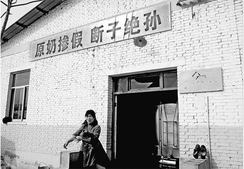泾阳县多家奶厂,近日都贴出同样内容的一条雷人标语:“原奶掺假,断子绝孙”。泾阳县蒋路乡澳西牧场63岁的饲养员董学文说,看到这个标语就不舒服。张贴标语的公司希望各方面汲取三聚氰胺事件的教训,标语的目的在于警示,也表明企业抓质量的态度。牧场总经理梁军表示,他能理解公司这么做的初衷,但内容值得商榷。(魏光敬 谢勇强摄影报道)