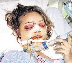 经过一天一夜的紧急抢救后,医生终于将莎娜从死亡线上抢救回来。为了拯救莎娜严重损毁的面容,医生将她脸部受损的皮肤从一侧耳根切开直至另一侧,取出碎得像蛋壳的骨头,并植入了足足15块钢片,重建颜面结构。最令人不可思议的是,医生在为莎娜体检时,意外发现她已经怀孕2周,而体内的胎儿居然毫发无损!