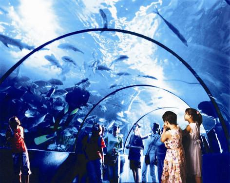 北京海洋馆的海底隧道,在虚拟的海底深处边看海豚表演边 kiss的感觉一定不错。