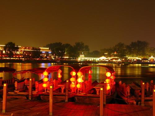 什刹海的橹船上,尽管太多灯红酒绿已让它成了块俗地儿,但凭着那片水里的桨声灯影及岸上的柳条和风,这头衔依然非它莫属。