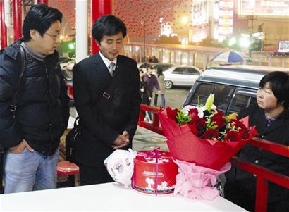 昨日(2月22日)离“情人节”过去已有8天,而在武昌徐东某商场前,一名小伙子带着鲜花和生日蛋糕,也足足等了8天。他等着女友前来,可结果“令人失望”。
