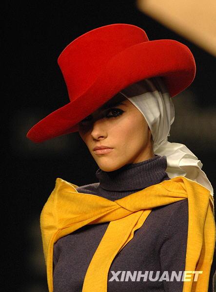 2月24日,在西班牙首都马德里举行的时装周上,模特在展示设计师的时装作品。新华社记者陈海通摄