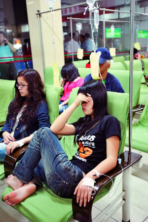 武警医院主治医生王红霞对记者说:“医院是17时30分收治这批病人的,根据我们检测,共有12人出现头晕、呕吐明显症状,一些人由于呕吐较为严重有轻微手抖和失液症状,根据患者症状,我们目前按照急性肠胃炎治疗,目前所有病人病情已经稳定,均不用住院治疗。(记者 张昊 通讯员 肖金 王军)