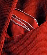1、就算是休闲款式的西装,袋巾也是要佩戴的。
