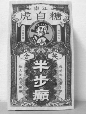 而在“含笑半步癫”糖的背面更写着:“传说中的含笑半步癫,是以蜂蜜、川贝、桔梗,加上天山雪莲配制而成。今人糖白虎改以跳跳巧克力取而代之,不需冷藏,也没有防腐剂。除了生性猛烈之外,味道还很好!实在是居家旅行,整人自娱,必备良品!”——这段产品解释更是与《唐伯虎点秋香》中的台词不谋而合。