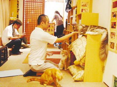 其实,猫咪咖啡馆能在日本风靡,还有一个重要的原因,那就是日本人的爱猫情结。在日本人眼里,猫代表着温柔、顺从、吉祥等意思,因此猫形状的装饰品、生活用品非常畅销。日本卡通漫画也有很多“猫主角”,如风靡全球的机器猫,让女孩为之疯狂的凯蒂猫,以及备受青睐的招财猫。还有很多小说、动画跟猫有关,如《我是猫》、《猫的报恩》、《穿长靴的猫》,甚至《猫眼三姐妹》。在和歌山县的贵志火车站,一只猫当上了站长,每日蹲在站口查票处,迎来送往每位乘客。(记者 王 菁 )