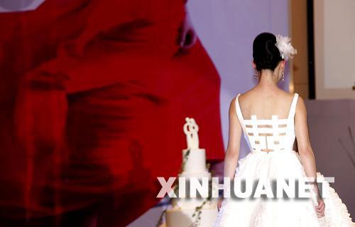 当日,一场“中国风 婚礼秀”在上海希尔顿酒店举行。模特们展示以红、白、绿、黄为色调的婚纱,给在场的准新人和来宾们带来美的享受。
