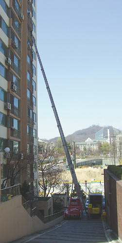 在韩国首尔,住在高层建筑的人们也不会为搬家发愁。韩国人把大件物品放到搬运机上,靠传送带把它们运达目的地,由窗子进屋,省时省力。