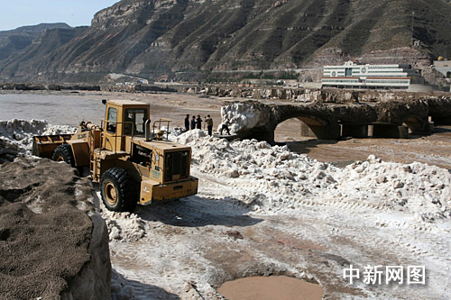 中新网3月28日电(刘一 长年 李峰 刘贵明 )连日来,山西吉县壶口风景区管委会组织人力配合机械对被冰覆盖通往壶口瀑布的道路路面冰块进行清理。有消息称,景区将于四月一日全面向游客开放。