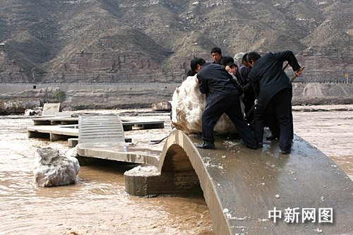 今年一月,壶口景区遭到百年不遇的冰灾凌汛灾害,造成了景区三公里道路和停车场被四米高的冰块覆盖,十米高的冰块把十里龙槽淹没,明清码头部分窑洞遭到冰块入侵。灾情发生后,景区立即启动防汛防洪应急预案,及时关闭景区,未造成一名人员伤亡。