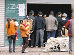 “快押快押,这几圈庄家霉起的,要赚钱的快点下注!”昨日下午,合川区渭溪农贸市场一门市传出男子吆喝声。由两张木桌拼成的简易赌台,被里三层外三层的村民围在中央。参赌者多为中老年人,一名八旬老太竟背着九个月大的曾孙挤到人群中喊:“两块钱,给我押小!”
