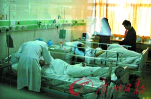 据太平人民医院耳鼻咽喉——头颈外科主任陈伟南介绍,陈某与张某两人送到医院时均处于贫血、休克状态。8位医务人员全力将他们抢救过来。两人伤在喉咙,伤口都有15厘米长,现在暂未脱离生命危险。(记者刘满元摄影报道)