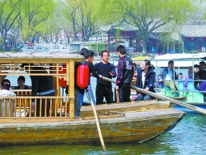 和其他的招聘会不同,野鸭岛码头的招聘活动在风景如画的后海水面进行,这让应聘学生兴奋不已。野鸭岛码头经理曲喜胜介绍,野鸭岛码头计划招聘员工五六名,职位包括船工、救生员等岗位,薪金待遇1500元左右,并为员工上齐三险,每年还有3个多月的假期。