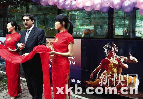 作为“2009印度旅游年”活动的一部分,由印度旅游局及印度驻广州总领事馆共同主办、以“不可思议的印度”为主题的车身广告推广活动昨天在广州正式启动。印度驻广州总领事班浩然(左二)出席活动。