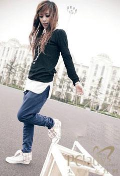 超级瘦脚的款式加上略微宽大的臀部和大腿部分的设计,十分适合梨子型的女生,而且还能让你看起来带有中性的美感,给人酷酷的感觉。