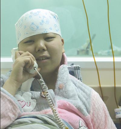 隔着病房的玻璃窗,记者通过电话与全薪宇进行了交流。尽管知道生父不愿为自己捐骨髓,她在整个采访中却没有一句怨言,一直绽放着乐观的笑容。
