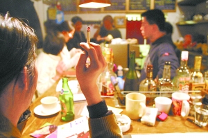 据调查,在簋街、方庄等餐饮店云集的餐饮街,设置无烟区的餐厅与普通餐厅比例为1比10,而且大部分的无烟区只是靠窗或靠门,有些座椅甚至和无烟区座椅“背靠背”,完全没有起到作用。