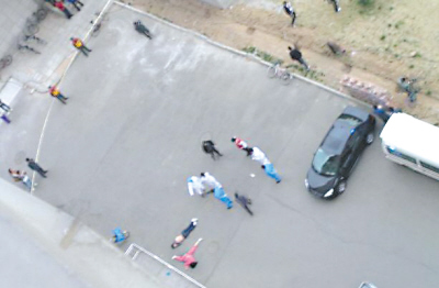 昨天,该校一名现场目击者陈姓学生透露,先听到有一男一女的争吵声,接着听到一个女生的嘶喊声,后来就看到一女一男先后从公寓楼坠下。当天下午6:40左右,北京朝阳警方迅速封锁现场,展开调查。另一目击者说,当晚6:20,一名女生从静思苑13层东南侧楼梯窗口坠下,5分钟后男生从同一位置坠下。坠楼后,两人横躺在宿舍楼南侧的地面上,女生穿粉红色睡衣,男生光着上身,下身穿牛仔裤,身下有大片血迹。原来,两人坠楼的窗台高约1米,窗户面积不足1平方米,窗户的纱窗已被撕开,一件蓝色运动上衣还留在窗台上,附近地面上还有数根烟头,该楼一层东侧入口处的栏杆也被砸断。