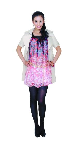 春天忽冷忽热,里外两件套的搭配可以随着温度变化增减衣物。里面,是具有夏天感觉的薄雪纺裙,外面,是百搭米色的中袖风衣裙。内外长度相仿,露出少少裙摆,神秘又浪漫。