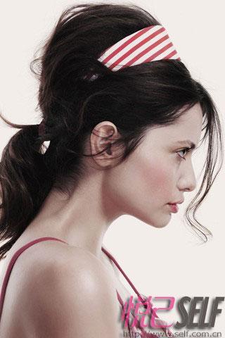 要抓住2009春夏发型趋势中每一个经过灵感碰撞却易于完成的style。头顶的一个小后梳以及颈背上扎一个低低的小马尾,这样会让你变的十分可人,然后混合进一个精巧的海军条纹型的发卡。无论是黑夜还是白天,都会极致清爽,极致完美。