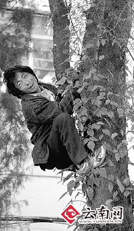 “太危险了,快点下来呀,我们给你买吃的……”昨日上午,一名衣衫褴褛的中年男子,在昆明市春登街一棵有腰粗的行道树上,时而蹲坐时而站立,路人纷纷驻足观望,经打听得知他妻离子散、窘迫异乡、栖身大树的辛酸经历后,市民纷纷给钱给物。今天,该男子在民警和救助站的帮助下坐车回家。